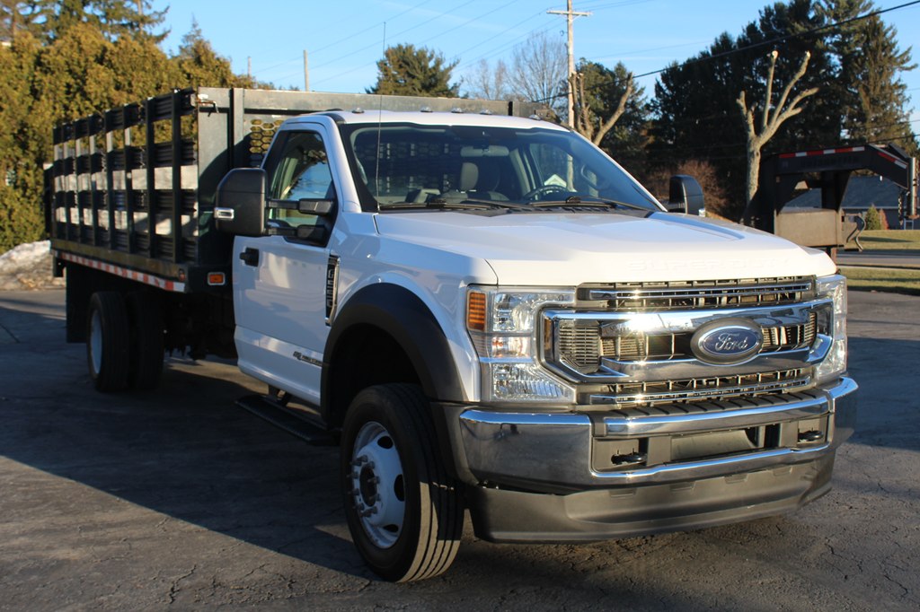 4x4 F550 Diesel 16 Foot Stake Bed with Liftgate. One Owner, No Accidents and Good Maintenance reported on CarFax. Fully serviced and inspected in our shop. We provide reliable and safe vehicles for our customers. We have multi year service contracts available. Financing can be arranged. We sell quality vehicles and trailers, specializing in diesel light and medium trucks. Our goal is to earn your business and keep it in the future. You can call 330-345-1474 for any information. We are looking forward to hearing from you. A complimentary Carfax for this vehicle is available on our website.