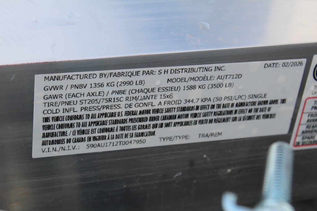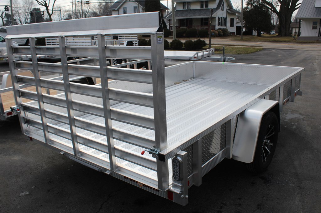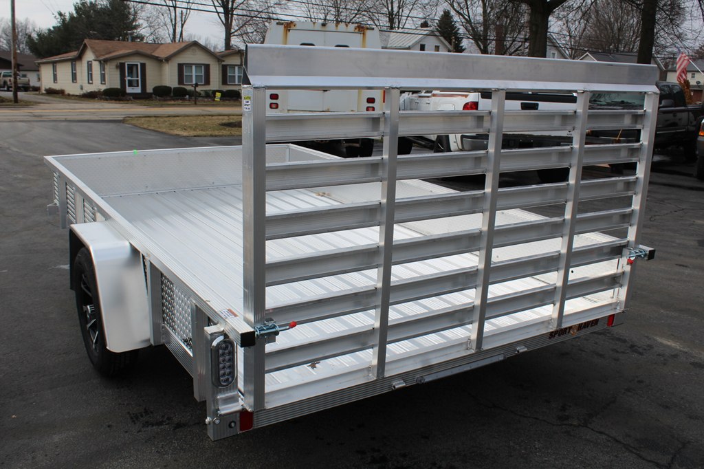 *** NEW 2026 *** Sport Haven Aluminum Utility Trailer, Single 3500 Lb Capacity Axle, 7 x12 Feet, weighs 620 Lbs, 2370 Lb Payload Capacity. Fluted Aluminum Tube Tongue, Tongue Supports, Frame and Crossmembers; 2In Wide Top Deck Rail; 2In x 2In Top Deck Rail Uprights; 6 In Slip Resistant Aluminum Decking; Aluminum Tread Plate Sides; All Aluminum 4Ft Rear Ramp; LED Lights; 15In Aluminum Wheels; ST207/75R15C Radial Tires; 3,500 lb Capacity Axle; Double Eye Spring Suspension; 3,500 lb Capacity Zinc Plated Couplers; 3,200 lb Capacity, 27In Safety Chains; 1,200 lb capacity Swivel Wheel Jack; 4-Way Flat Wiring Harness; 2In Ball; 14In Hitch Height; 17In Deck Height; 13In Rail Height Above the Deck; 2,990 lb Gross Vehicle Weight Rating (GVWR).