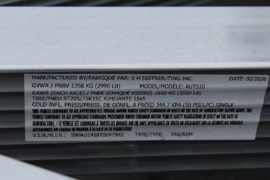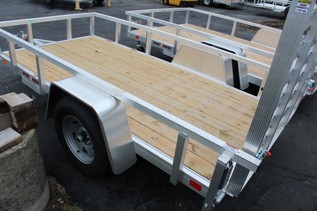 *** NEW 2026 *** Sport Haven Aluminum Utility Trailer, Single 3500 Lb Capacity Axle, 5x10 Feet, weighs 500 Lbs, 2490 Lb Payload Capacity. Fluted Aluminum Tube Tongue, Tongue Supports, Frame and Crossmembers; 2In Wide Top Deck Rail; 2In x 2In Top Deck Rail Uprights; 5/4In x 6In ProWood DuraColor Decking; All Aluminum 4Ft Rear Ramp; LED Lights; 15In Silver Powder Coated Wheels; ST207/75R15C Radial Tires; 3,500 lb Capacity Axles; Double Eye Spring Suspension; 3,500 lb Capacity Zinc Plated Couplers; 3,200 lb Capacity, 27In Safety Chains; 1,200 lb capacity Swivel Wheel Jack; 4-Way Flat Wiring Harness; 2In Ball; 14In Hitch Height; 17In Deck Height; 13In Rail Height Above the Deck; 2,990 lb Gross Vehicle Weight Rating (GVWR).