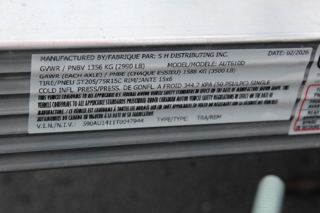 *** NEW 2026 *** Sport Haven Aluminum Utility Trailer, Single 3500 Lb Capacity Axle, 6 x10 Feet, weighs 520 Lbs, 2470 Lb Payload Capacity. Fluted Aluminum Tube Tongue, Tongue Supports, Frame and Crossmembers; 2In Wide Top Deck Rail; 2In x 2In Top Deck Rail Uprights; 6 In Slip Resistant Aluminum Decking; All Aluminum 4Ft Rear Ramp; LED Lights; 15In Aluminum Wheels; ST207/75R15C Radial Tires; 3,500 lb Capacity Torsion Axles; 3,500 lb Capacity Zinc Plated Couplers; 3,200 lb Capacity, 27In Safety Chains; 1,200 lb capacity Swivel Wheel Jack; 4-Way Flat Wiring Harness; 2In Ball; 14In Hitch Height; 17In Deck Height; 13In Rail Height Above the Deck; 2,990 lb Gross Vehicle Weight Rating (GVWR).