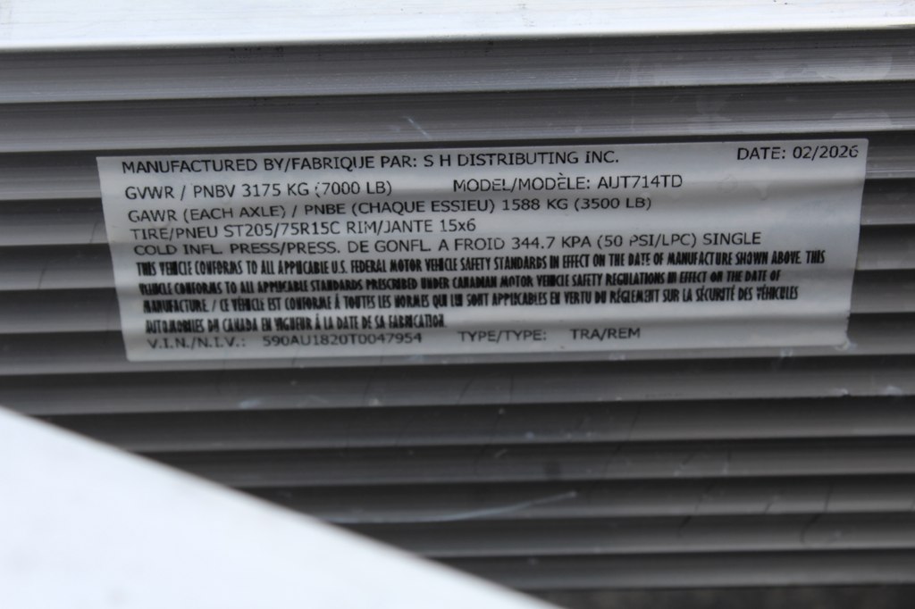 *** NEW 2026 *** Sport Haven Aluminum Utility Trailer, Tandem 3500 Lb Capacity Axles, 7 x14 Feet, weighs 940 Lbs, 6060 Lb Payload Capacity. Fluted Aluminum Tube Tongue, Tongue Supports, Frame and Crossmembers; 2In Wide Top Deck Rail; 2In x 2In Top Deck Rail Uprights; 6 In Slip Resistant Aluminum Decking; Aluminum Tread Plate Sides; All Aluminum 4Ft Rear Ramp; LED Lights; 15In Aluminum Wheels; ST207/75R15C Radial Tires; 3,500 lb Capacity Axles; Electric Brakes On Both Axles; Double Eye Spring Suspension; 7,000 lb Capacity Zinc Plated Couplers; 7,600 lb Capacity, 30In Safety Chains; 2,500 lb capacity Zinc Plated Pad Jack; 7-Way Round Wiring Harness; 2In Ball; 13In Hitch Height; 17In Deck Height; 13In Rail Height Above the Deck; 7,000 lb Gross Vehicle Weight Rating (GVWR).