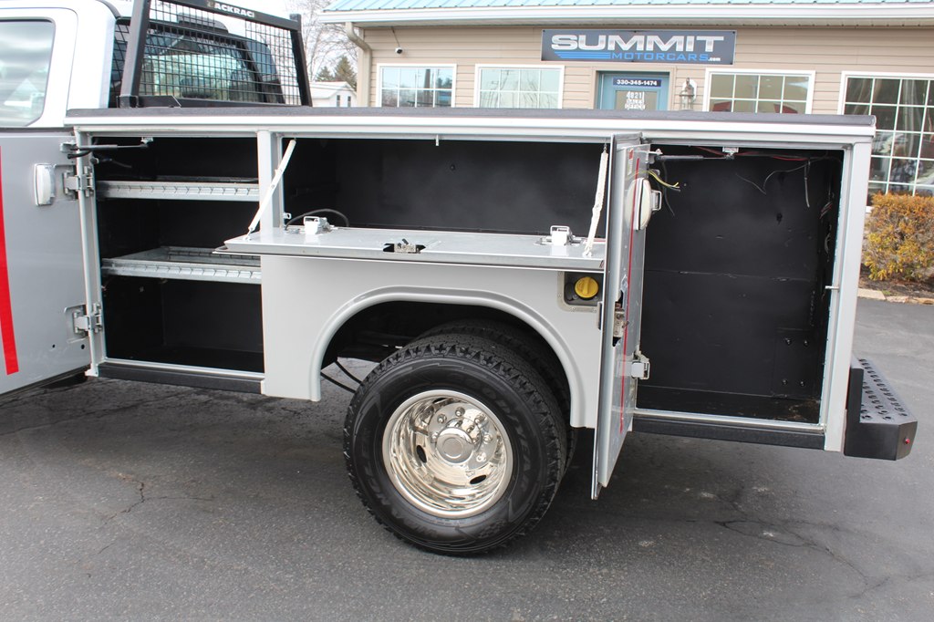 4x4 F350 Cab/Chassis with a Reading Service Body. 6.2L Gas engine. Fully serviced and inspected in our shop. We provide reliable and safe vehicles for our customers. We have multi year service contracts available. Financing can be arranged. We sell quality vehicles and trailers, specializing in diesel light and medium trucks. Our goal is to earn your business and keep it in the future. You can call 330-345-1474 for any information. We are looking forward to hearing from you. A complimentary Carfax for this vehicle is available on our website.